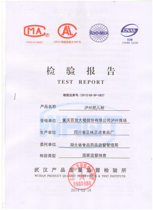 近日,四川省正味正點食品廠(原瀘州肥兒粉廠)傳來捷報,該廠所生產的“瀘州肥兒粉”系列產品,在2013年底“國家監督抽查”(委托“湖北省食品藥品監督管理局”進行)中對我市的食品質量暗查抽檢專項行動時,對“瀘州肥兒粉”系列產品進行了抽樣檢測。此次對抽檢食品的檢測指標一共有600多項,“瀘州肥兒粉”系列產品600多項受檢指標全部檢測合格,無一指標不達標。