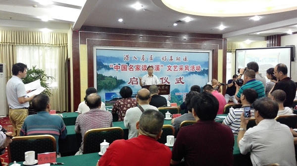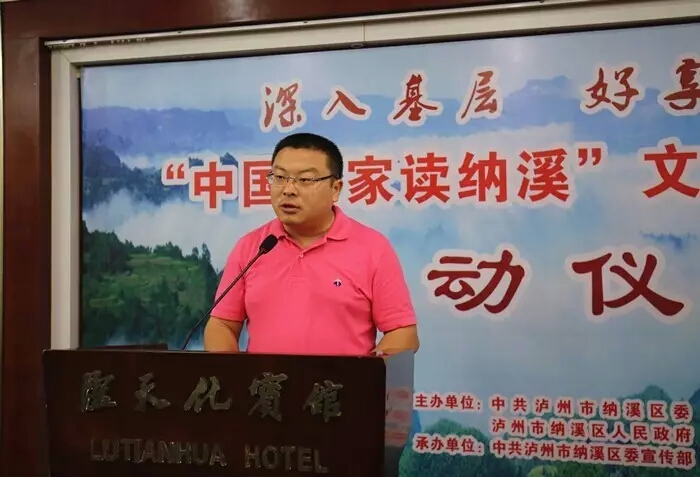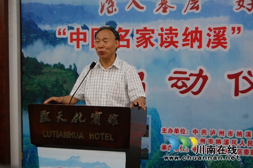 在7月7日的“中國名家讀納溪”啟動儀式上,瀘州市納溪區委副書記、區長譚榮兵對大家的到來表示熱烈的歡迎!他在致辭中說,納溪區大力發展和繁榮文化事業,大力傳承紅色文化,挖掘民俗文化,打造特色文化品牌,積極推進文旅融合發展。舉辦了“走近護國戰爭”系列活動,建成“護國公園”和全國首個“護國戰爭紀念館”;大力挖掘和傳承民間民俗文化,邀請著名音樂人小蟲和歌唱家李谷一聯袂打造了形象歌曲《那溪那山》,出版了納溪民歌輯《那溪那山那歌》。“游山玩水,好享納溪。希望3天的采風活動能給各位名家提供交流切磋機會,更希望納溪的靈山秀水、特色產業、人文歷史能給各位名家無窮的創作靈感,為納溪這片熱土留下更多、更寶貴的文藝作品!
