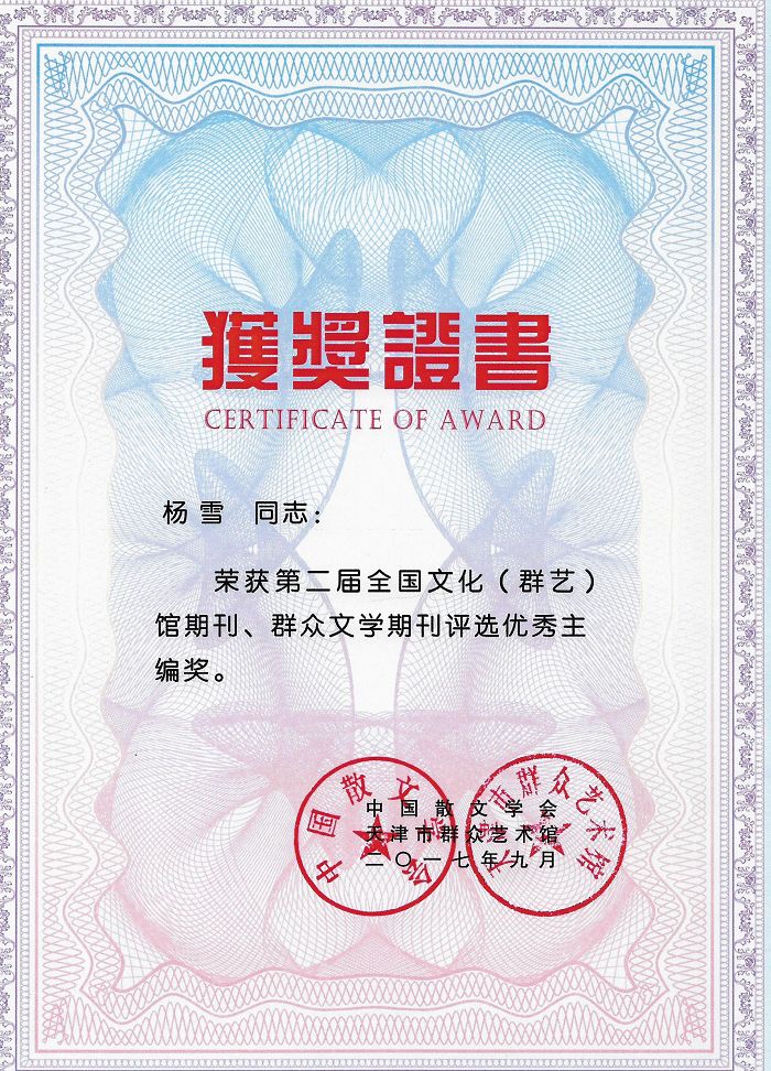 瀘州市作家協會副主席歐陽錫川,代表瀘州市作家協會和楊雪主席赴天津,參加了第二屆全國“文化杯”文化(群藝)館期刊、群眾文學期刊評選的頒獎活動,并領回獲獎證書和獎牌。據介紹,此次文學期刊評選自今年3月啟動以來,共收到來自全國31個省市的文化(群藝)館和散文學會主辦的140余種文學期刊,并在此次頒獎大會期間進行了展示,文學期刊《瀘州作家》倍受關注。