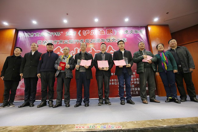 領導和名家為“瀘州市商業銀行成立20周年征文”大賽獲獎代表頒獎并合影