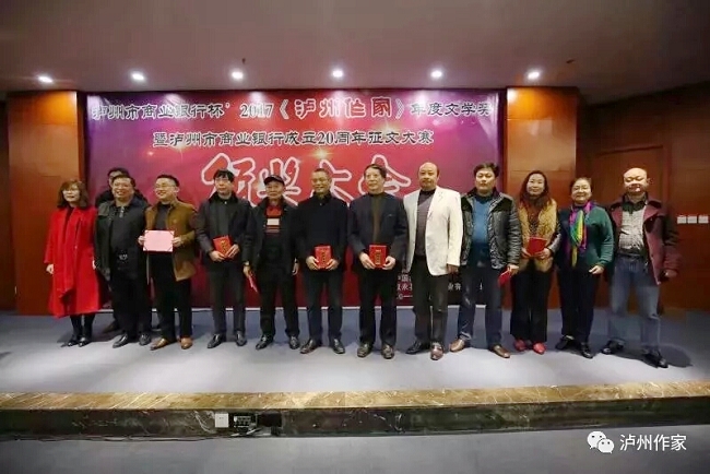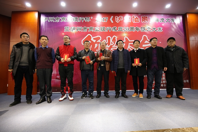 頒獎大會還頒發了瀘州市商業銀行成立20周年征文活動的幾個獎項,由瀘州作家協會和瀘州市商業銀行聯合主辦的“瀘州市商業銀行20周年征文”活動開展以來,收到了全國各地和英國留學生等眾多文學愛好者的大量來稿,經過評委們公證、嚴謹、認真負責的初評,終審,評選出了一、二、三等獎及優秀獎和鼓勵獎,取得了良好的社會效益,擴大了瀘州市商業銀行的影響力,也給作家們提供了展示的舞臺。獲得一等獎作者為吳小林、肖揚兩名;獲得二等獎的有陳宗華、田玲、劉傳福、方剛共四名;獲得三等獎的有龍啟權、上官燕、朱冰彬、郭嶺、歐陽夢華共五名,還有優秀獎10名,紀念獎20名。