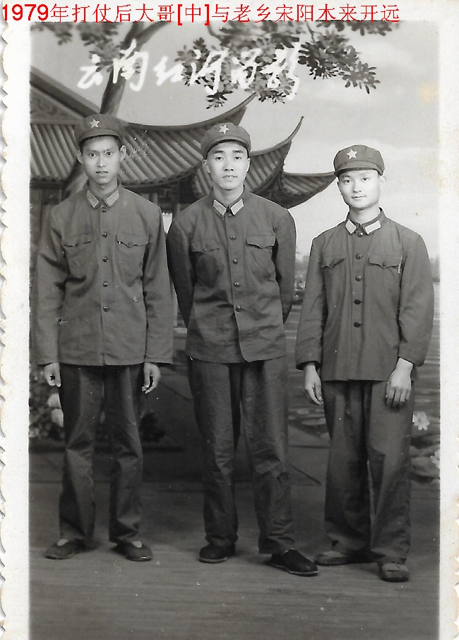 星期天,我大哥搭乘一輛路過大屯的軍車到了開遠(yuǎn)。他知本團(tuán)11連臨時駐扎開遠(yuǎn)黨校,就先去黨校找老鄉(xiāng)宋陽木。大哥一行4人步行到23分部機(jī)關(guān),很快就找到了我們連隊(duì)。與大哥和宋陽木一起來的另外二人,經(jīng)大哥介紹我知道了是曾大成和劉云友,都是隆昌縣的,同宋陽木在一個連隊(duì)。