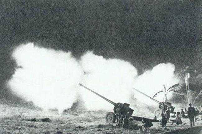 大炮們吐著火焰,炮彈紛紛射向越南。