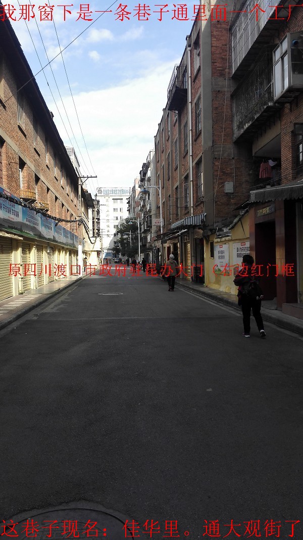 現(xiàn)在,這巷子不再是斷頭路,已改建為名叫佳華里的一條小街,連通新聞路和大觀街。原渡口市駐昆明辦事處的大門及其樓房,依然在原處,但已無辦事處的掛牌。