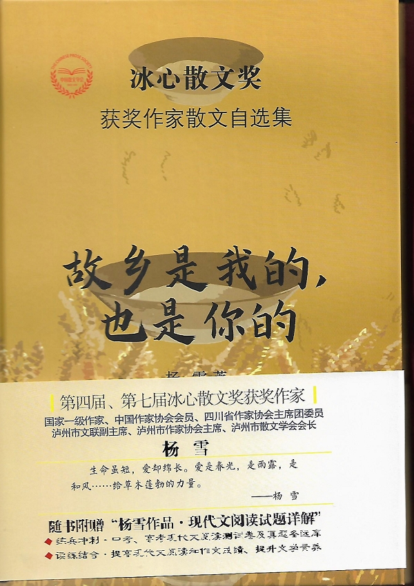 中國散文學會組織的“‘冰心散文獎’獲獎作者散文自選集”系列著作出版,在全國首批組織了20位冰心散文獎得主的著作,其中就有楊雪散文集《故鄉是我的,也是你的》。這批書已上架,向全國推廣。