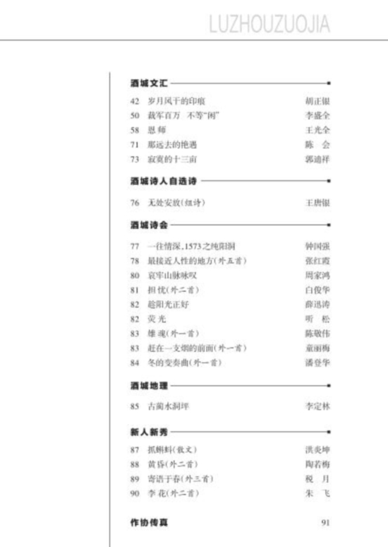 3、對征集的作品,經(jīng)審查合格的,在“瀘州作家網(wǎng)”或瀘州作家微信公眾號展示,擇優(yōu)在《瀘州作家》雜志發(fā)表并付稿費。