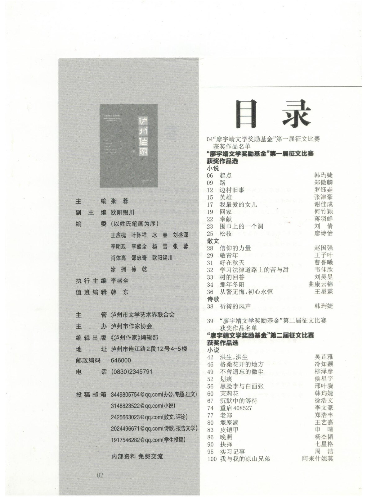 《瀘州作家》(雙月刊)2025第2期 目錄