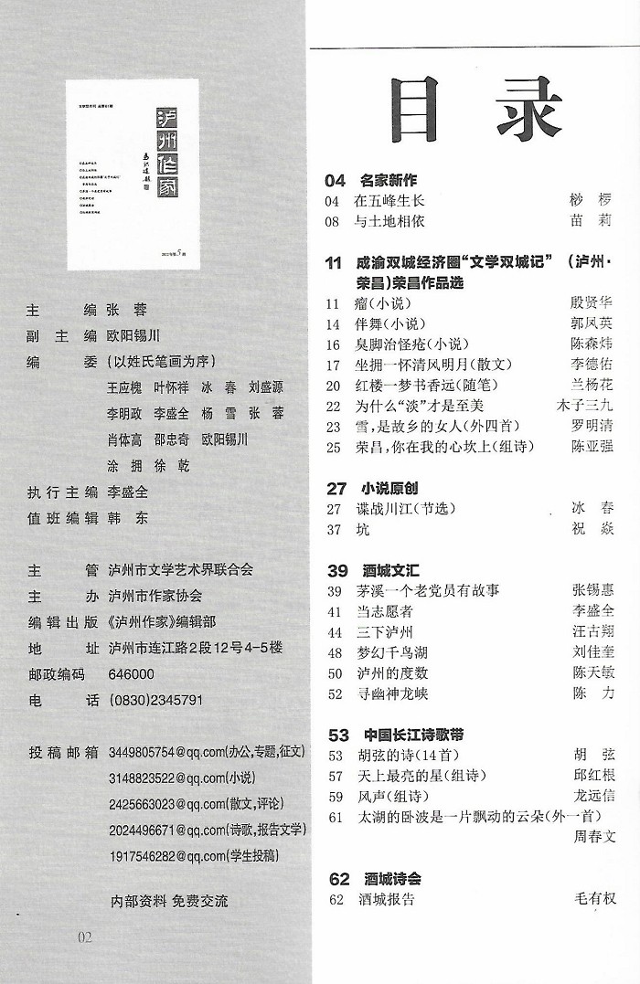 附件:雙月刊《瀘州作家》雜志 投稿郵箱: