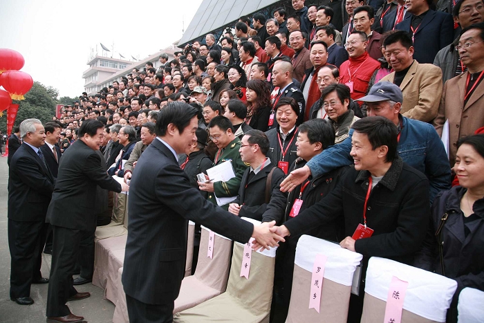 劉奇葆指出,全省文藝工作者高舉中國特色社會主義偉大旗幟,以鄧小平理論和“三個代表”重要思想為指導(dǎo),深入貫徹落實科學(xué)發(fā)展觀,堅持為人民服務(wù)、為社會主義服務(wù)的方向,堅持百花齊放、百家爭鳴的方針,堅持貼近實際、貼近生活、貼近群眾的原則,與時俱進、勤奮耕耘,大力發(fā)展社會主義先進文化,創(chuàng)作了一大批文學(xué)藝術(shù)優(yōu)秀作品,涌現(xiàn)出了許多深受群眾喜愛、在省內(nèi)外具有較大影響的作家、藝術(shù)家。在抗震救災(zāi)斗爭中,廣大文藝工作者用各種文藝形式表達生命關(guān)愛、傳遞人間真情、謳歌英雄壯舉、激發(fā)奮斗豪情,譜寫了文藝服務(wù)人民的時代篇章。實踐證明,我省文學(xué)藝術(shù)界蓬勃向上、成果豐碩、人才輩出,廣大文藝工作者政治堅定可靠、藝術(shù)造詣深厚、社會貢獻巨大。你們創(chuàng)造性的勞動和時代性的力作,必將永載四川文化發(fā)展史冊。
