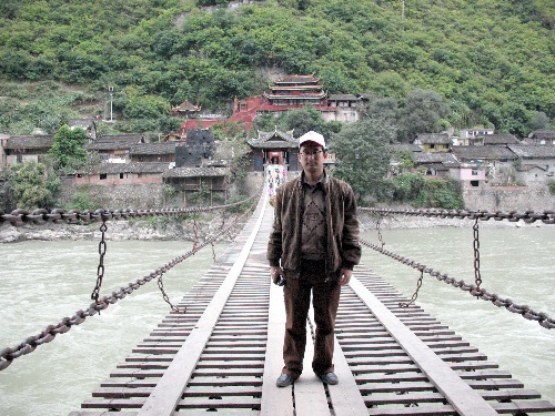 站在鐵索橋上,看那燦爛的陽光照在河面上,河水金光閃閃依然不停地向下游奔去,只是不再有當(dāng)年的槍炮聲、拼殺聲,只有和諧、寧靜。歷史的進(jìn)程滾滾向前,就如這大渡河水一樣一去不復(fù)返。